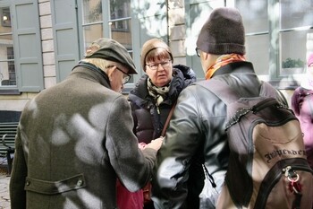Huovila johdatti lukijamatkalaiset Tukholman ruotsalaisen seurakunnan pappina työskennelleen Leila Mänttärin ja hänen puolisonsa Jari Mänttärin luomalle kävelykierrokselle. Kiertokävelyllä keskityttiin säätyvaltiopäivien ympärille.